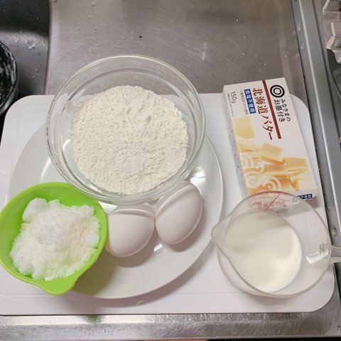 재료 : 팬케익 믹스 100g, 계란 2개, 우유 40ml, 설탕 50g, 버터 약간