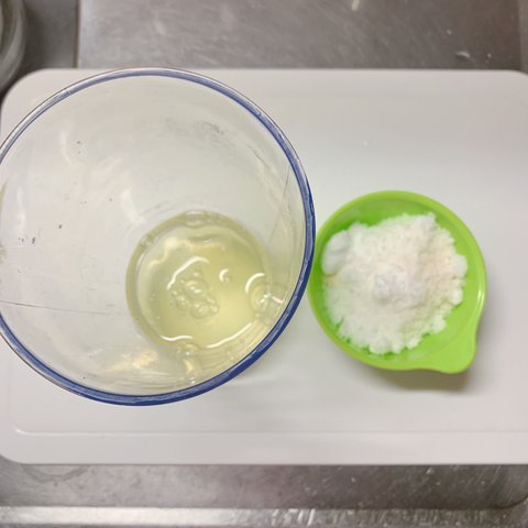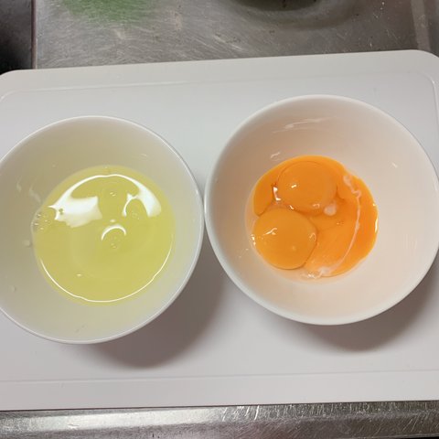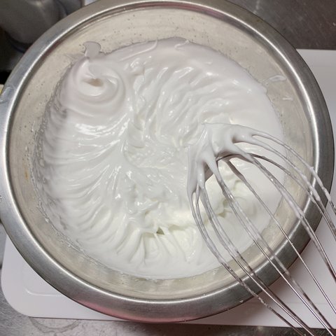 흰자는 설탕을 나누어 넣어 가며 전동 거품기로 머랭을