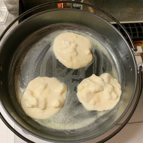 팬케익 반죽을 눌리지 않게 떠 넣는다.