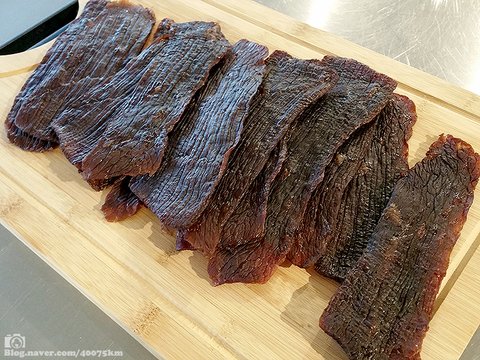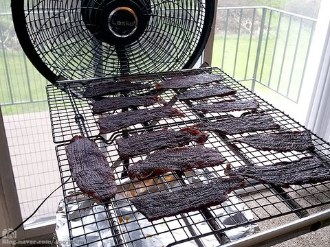 그래서 선풍기에 말린 육포가 살짝 더 딱딱한 식감이 있기는 한데 맛은 뭐 거의 비슷합니다.