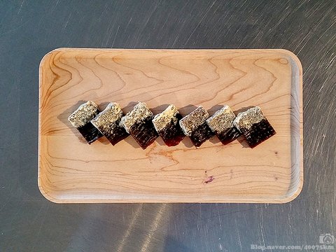 꿀을 찍은 다음 콩가루에 한 번 굴려주면 달달하고 고소한 첫 맛과 짭짤한 고기 맛이 어우러지며 한층 더 높은 레벨의 맛을 보여줍니다.