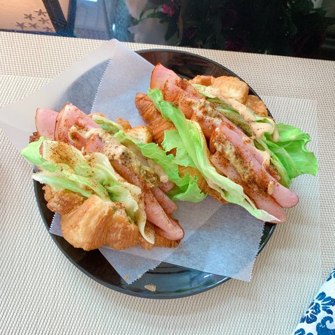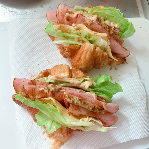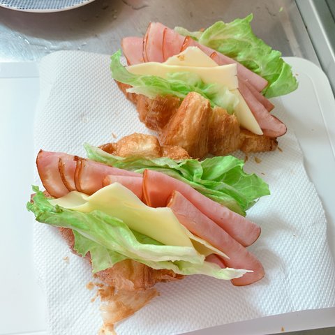 크로와상 좋아하는 친구에게 아침 샌드위치.