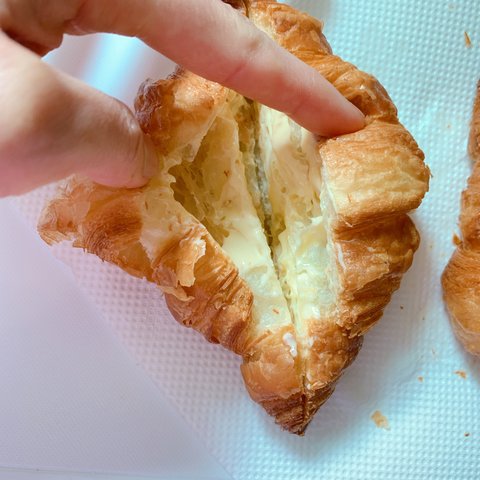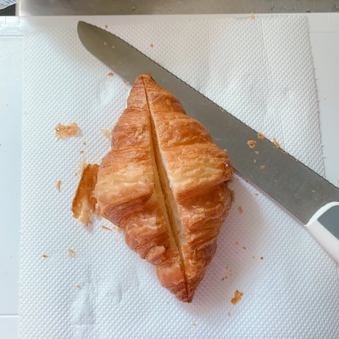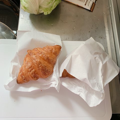 친구가 아침에 빵집에서 갓 구워 낸 크로와상을 사다 주었다.