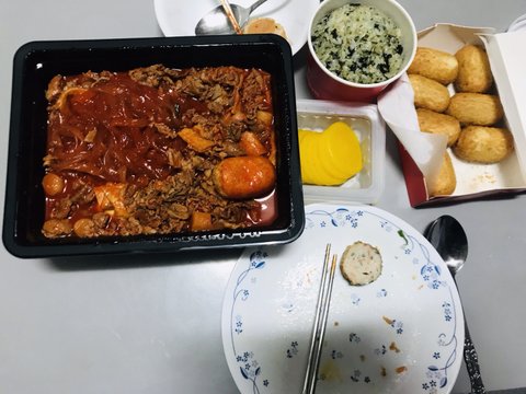 집에서 해물찜 시켜먹고 밥 3공기 먹고 바로 눕기