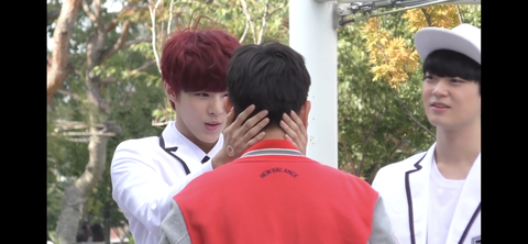 업텐션이 자주하며 노는건데 막내라인이 일부러 저렇게 장난치면 매를 벌어