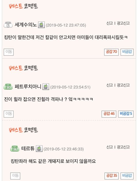 ((참고로 여기선 방탄을 주로 킹탄, 빛탄, 킹탄좌 등으로 부르기도 함))