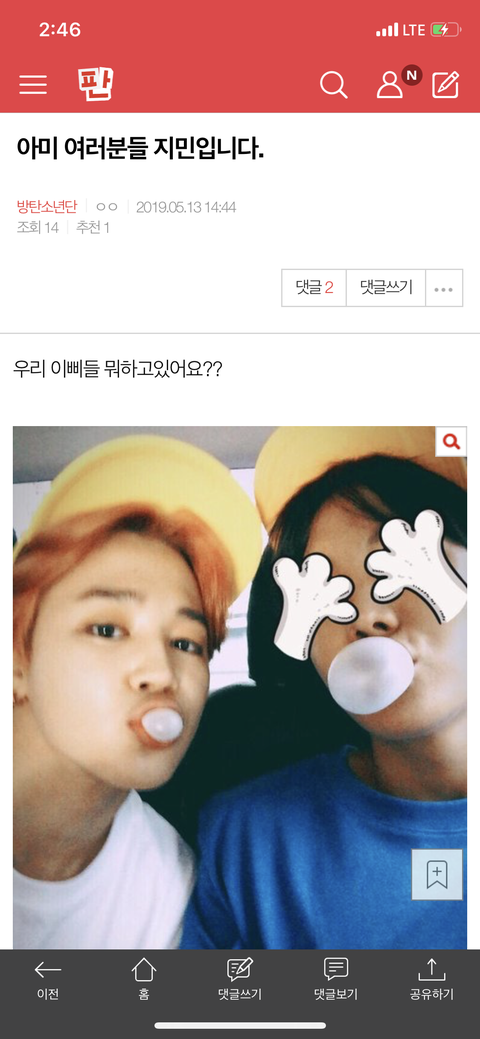 밑 아미 여러분들 지민입니다 어그로임 여기서봐