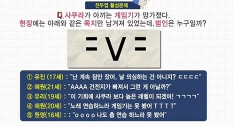 현장에는 아래와 같은 쪽지만 남겨져 있었는데, 범인은 누구일까?