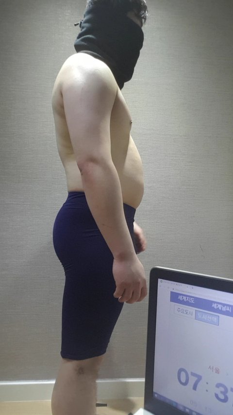 2.운동 쉰지 3년 가까이 된 평범한 일반인의 몸입니다. 그 상태에서 3개월 가까이 살찌운 거라고 보시면 됩니다. 하체와 복부 위주로 많이 찐 것 같군요. (3년 동안 중간에 웨이트를 가끔 한번 씩 하긴 했지만 2주 이상 지속적으로 한 적은 없습니다.)
