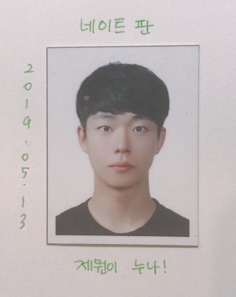 어떠세요? 제원이의 매력에 점점 더 빠져드시는 것 같으신가요?(제원이 PR 영상 대사 따라하기) 마지막으로 인증용으로 제원이 증명 사진 하나 남길게요ㅎㅎ. 예전에 제원이한테 받은 거인 데다 제가 지갑에 막 넣고 다녀서 이물질이 살짝 묻어 있어요ㅠㅠ. 그리고 제가 사진을 너무 못 찍는데다가 제원이 실물보다 못 나와서ㅠㅠ 죄송하지만 이 사진은 너무 유포하지 말아주세요.감사합니다.