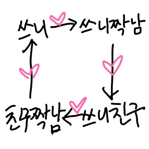 간단히 요약하면 내가 좋아하는 애가 내 친구를 좋아하고 내 친구가 좋아하는 애가 나를 좋아함ㅋㅋㅋㅋㅋㅋㅋㅋㅋㅋ