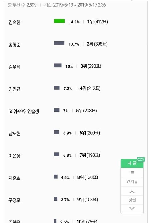 원픽 투표 인기1김요한 2송형준 3김우석 4김민규