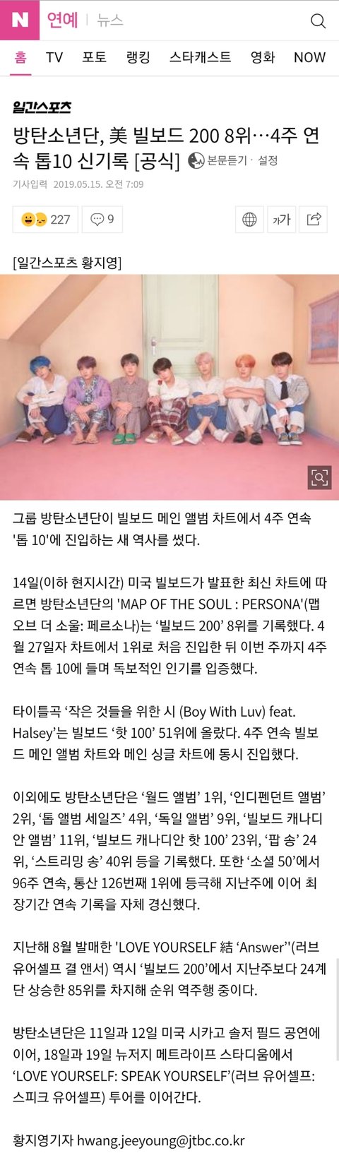 넬보드 200 4주 연속 톱10 !!