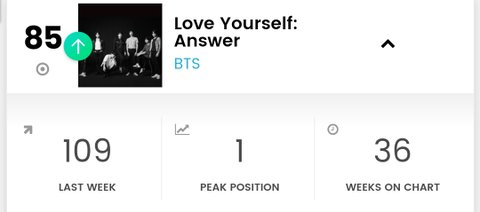 앤써는 다시 역주행 해서 85위(넬보드 200), 소셜은 96주 연속 1위!