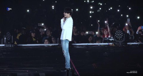 어두웠던 공연장에 불이 밝혀지면서 응원봉을 든