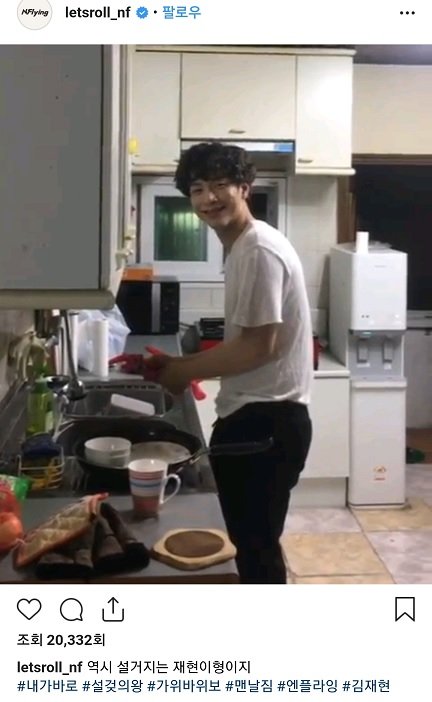 가위바위보 져서 설거지 하는 중이면서도 넘 귀엽고 해맑은 김재현씨ㅠ