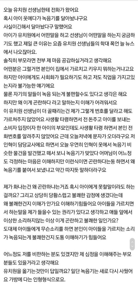 아이 옷에 녹음기 달고 유치원 보낸 엄마 논란.jpg