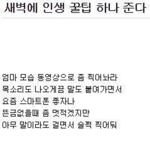 얘들아 진짜야 내 평생 아빠랑 친해본적이 없었어 엄마랑 이혼해서 아빠랑 동생이랑만 살았는데도 말야 아빠가 돌아가신지 8달 됐어 근데 동영상이 딱 하나 있었거든 찍고 초기화도 했어서 복구가 될지 모르겠지만 백업 해둘걸 정말 후회했어 평상시 통화 녹음본도 좋아 난 아빠 심부름이 많아서 다시 들으려고 녹음 해두는게 습관이 됐는데 얼마전에 파일 들어가서 트니까 듣자마자 눈물부터 나더라 왜 후회할 짓을 했을까 후회되더라 평상시 잘하는게 최고지만 사진이나 녹음본 동영상 인화된 사진 써두신 글씨 등 다 좋아 그냥 흔적이면 좋아 그냥 내 머릿속에서 기억에서 잊혀지는게 너무 싫어 너흰 꼭 잘해드려 나는 너무 후회된다