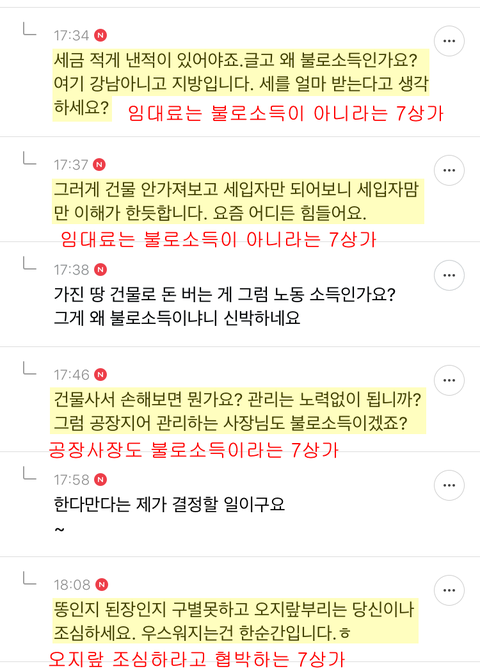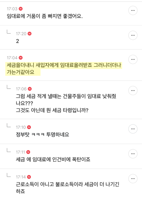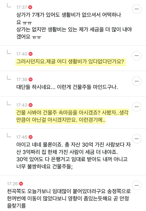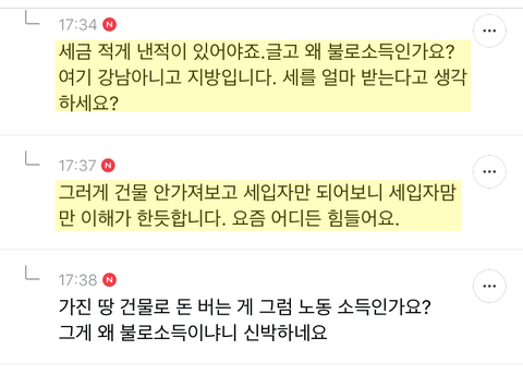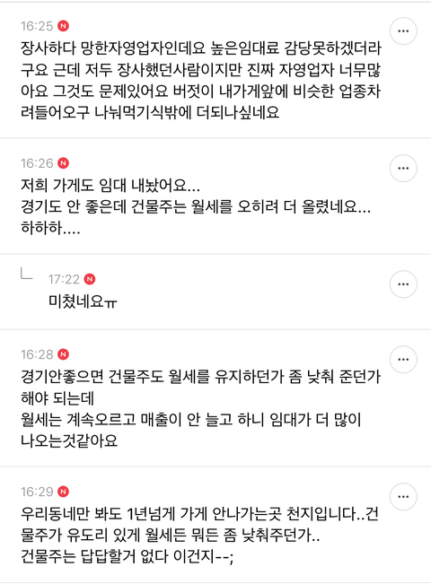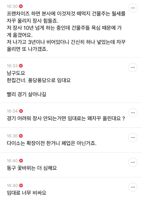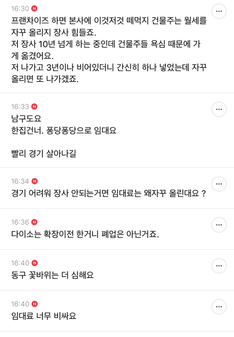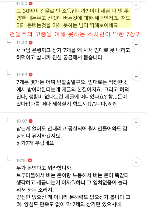 임대료가 너무 높다는 댓글들이 줄을 잇는데