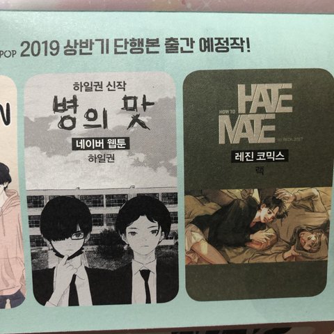 그끝에있는것 알라딘에서 시켜서 오늘 배송도착했는데 책사이에 뭐껴있어서 봤더니 그냥 책 부록 같은느낌인데 저기에 그 단행본 예정작에 하테마테 있다고 ㅠㅠㅠㅠㅠㅠㅠㅠㅠㅠㅠㅠㅠ 아니 지린다고 ㅠㅠㅠㅠㅠㅠㅠㅠㅠㅠㅠㅠㅠㅠㅠㅠ 문제되면 삭제할께..