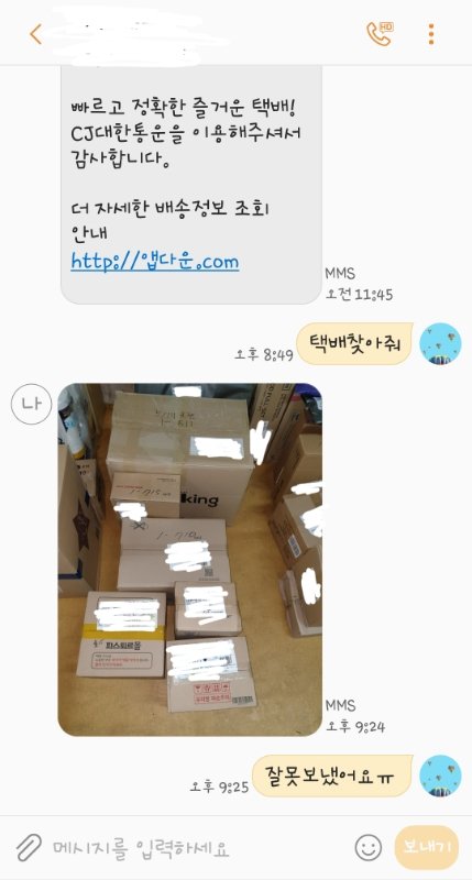 엄마한테 보내야되는걸 택배 도착했다는 메세지 보고 그대로 거기다 택배 찾아달라고 보냄