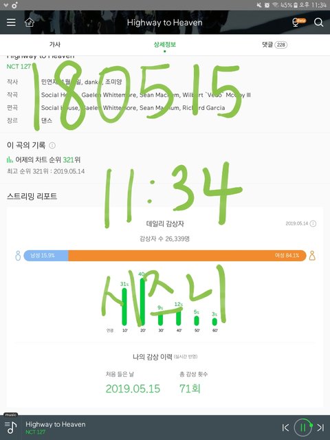음원발매일부터 스밍한 Highway To Heaven 누적횟수