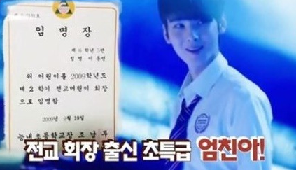 학창시절 공부도 잘 하고 전교회장에 축구부 농구부 주장도 했었다는 차은우