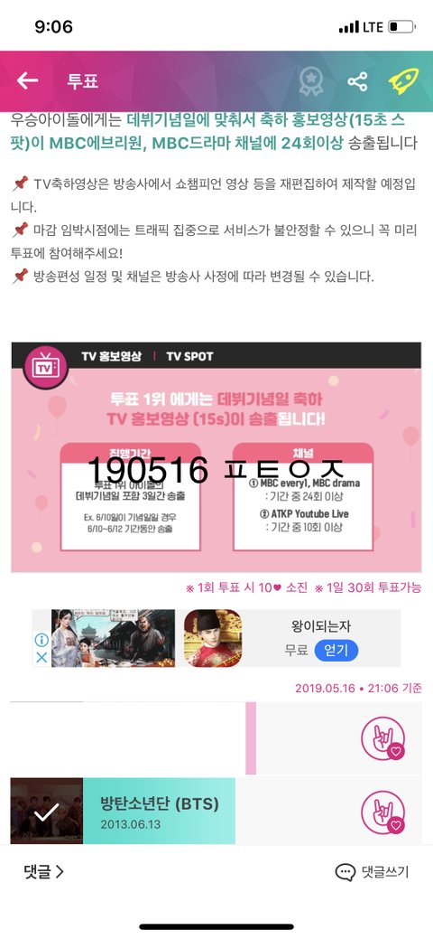 데뷔기념일에 홍보영상 틀어주는 투표래