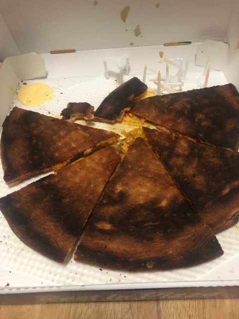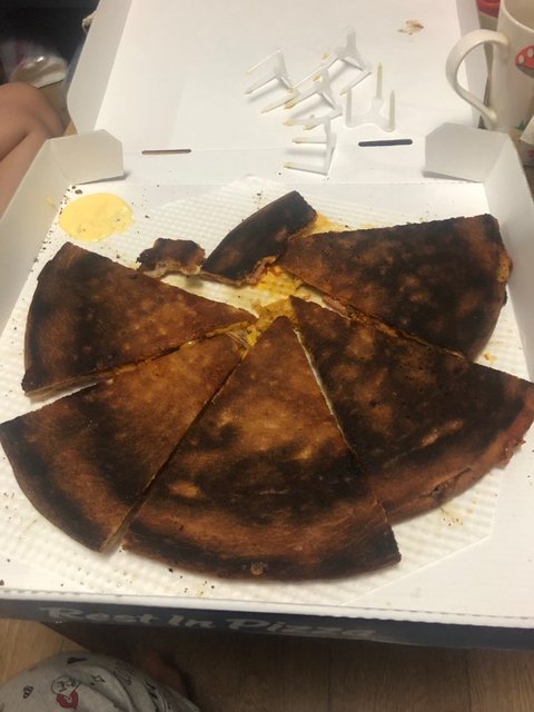 그러다 같이 먹던 오빠가 뭐가 이상하다고 피자를 놨는데 뒷면이 보임. 새까맣게 도우가 타있었음. 피자들 다 뒤집어보니 다 새카맣게 타있음ㅋㅋㅋㅋㅋㅋ