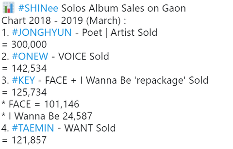 샤이니에서 태민이 솔로 판매량 꼴찌네