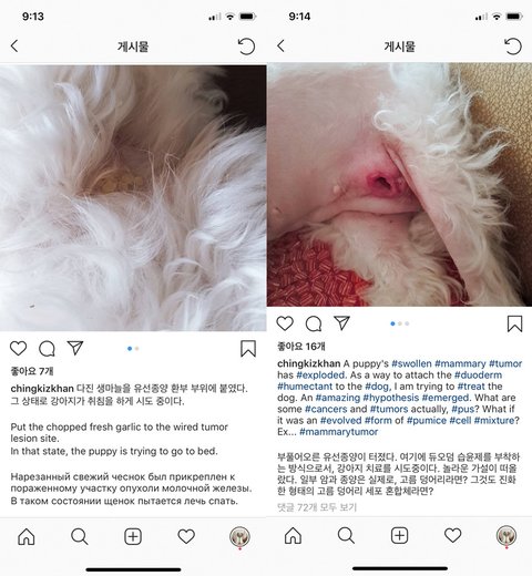 본인의 자가치료, 항암요법을 고집하며, 괴로워하는 강아지에게 마늘치료를 계속하였습니다.