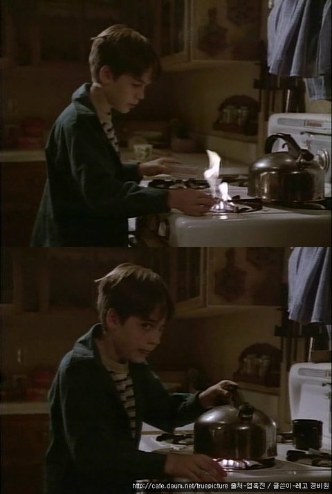 조지는 허둥지둥 가스레인지로 달려가 불을 지피고,