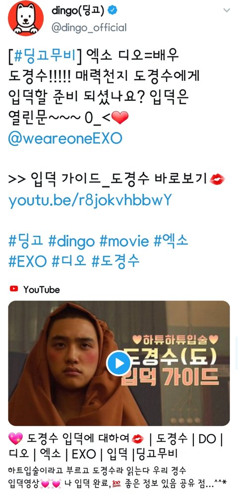 띵고 무비에 경수 영상 올라옴