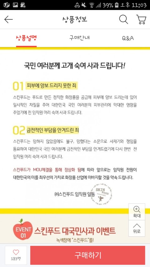 국민한테 사과할 게 아니라 스킨푸드 믿고 창업했던 지점주들한테 사과해야지