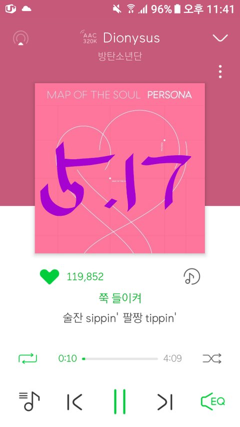 5주동안 스밍인증 잘해준거 너무 고맙고 멋졌어