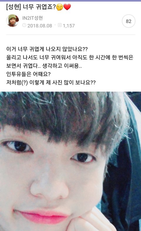 이건 성현이가 러블리즈의 종소리와 몬스타엑스의 젤러시를 팬사인회에서 짧게 커버한 무대인데 성현이의 귀여움과 끼가 살살 녹아들어 있엉 내 입덕 영상이야!