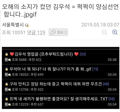 밑으론 평소 팬들한테 잘하는 김우석 짤들이랑 미담 몇개