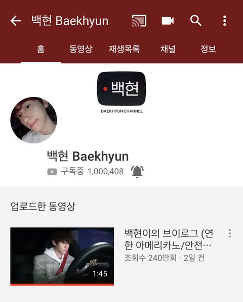 소속사 홍보없이 영상 하나로 조회수 240만 찍고 구독자 백만 넘은거 짜릿해ㅠㅠ 백현 슈스다ㅠㅠ❤️❤️