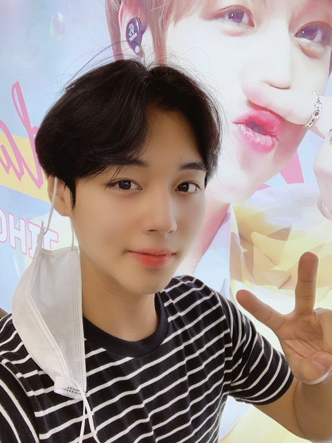 케이콘 갈 때 공항에서 기자들한테 브이하다가 플래시 터지는거때매 자동 눈웃음 된 박지훈 올리고감!!