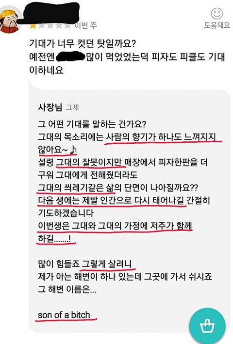 이건 응대 불만과는 별개로 손님에 대한 모욕을 넘어 정말 신고해야할 만한 일이라고 생각합니다.