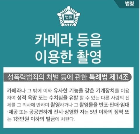이 사진에 나와있는 것처럼 카메라 등을 이용한 촬영은 법적으로 조치가 가능함.