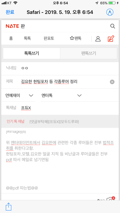 헌팅포차,모텔,김요한 얼굴 지적 등 비난글과 루머글들은 전부 pdf 따서 메일로 넘기면됨