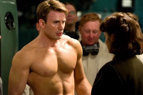 영화 '퍼스트어벤져' 속 약골 청년 스티브 로저스를 연기하는 장면