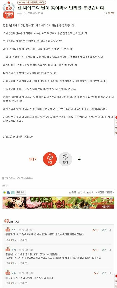 전 와이프 딸이 찾아와 난리를 피웠습니다