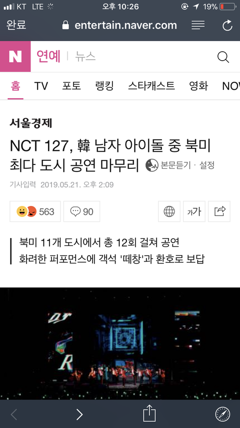 북미투어 최다도시 갔다는 기사에 악플ㅋㅋㅋㅋ