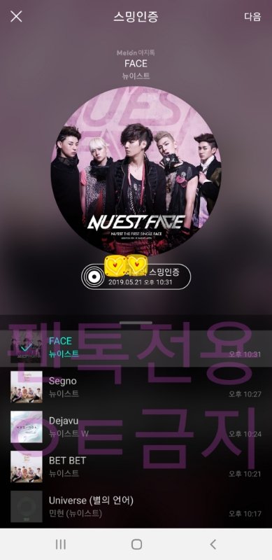 느낌이 뉴이스트 아시는거 같았는데 좀 질척여볼걸 걍 씩 웃어만 드리고 나온게 넘 아쉽당 ㅠ ㅠ