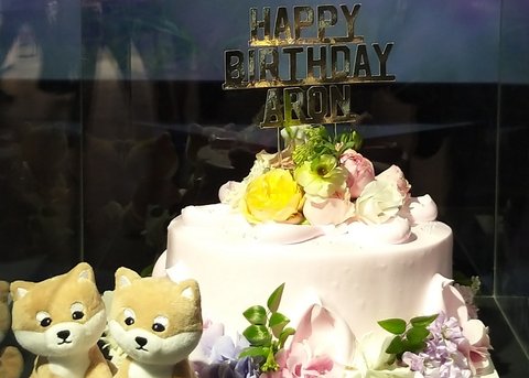 이렇게 노순이랑 함께한 아론이 생일축하 케이크도 있구