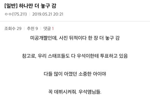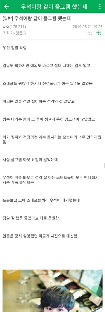 진짜 알면 알수록 좋은 사람 같은데 루머땜에 고생한거 너무 짠내야..... 잘 됐으면 좋겠다