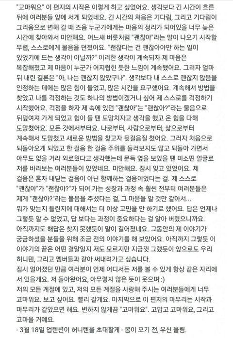 이 인터뷰도 많은생각이 듬 중고라서 편견이있는데 헤아린다는 표현이 대박