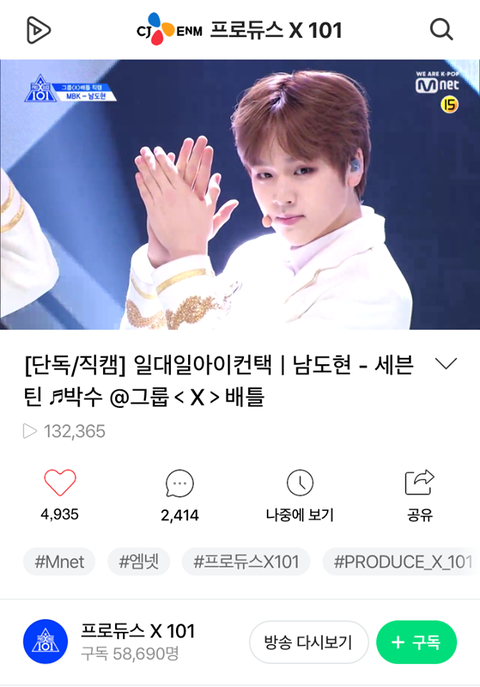 현재 프듀X101 1차 경연 개인 직캠 조회수 1~2위를 다투고 있는 MBK 남도현
